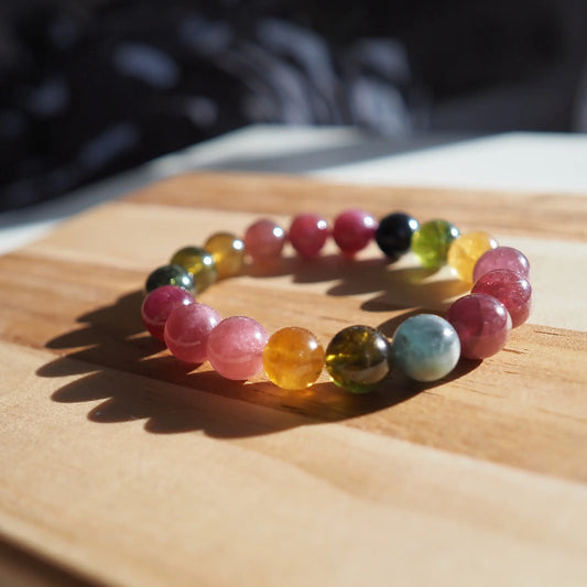 Natural High Quality Rainbow Color Tourmaline Bracelet 10mm