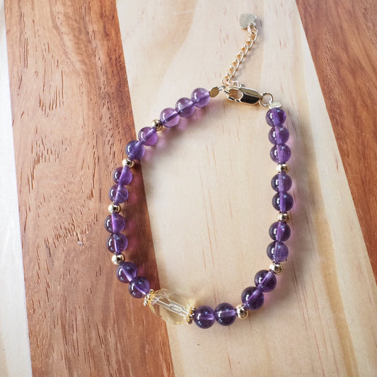 Natural Amethyst and Citrine Bracelet with 14K Gold Plated 6mm