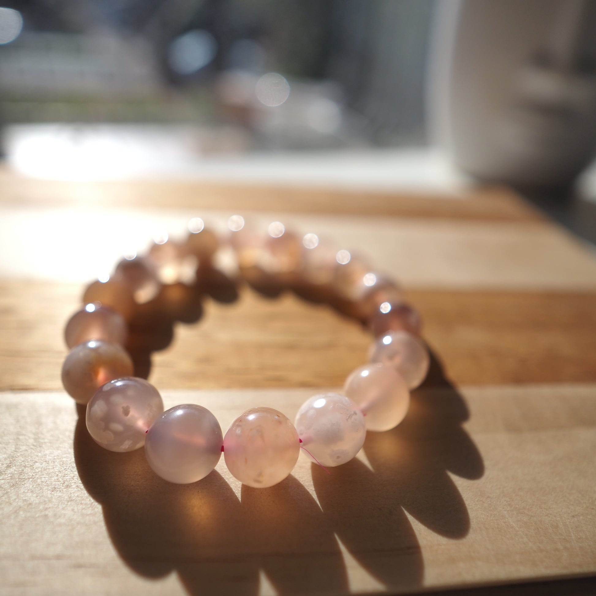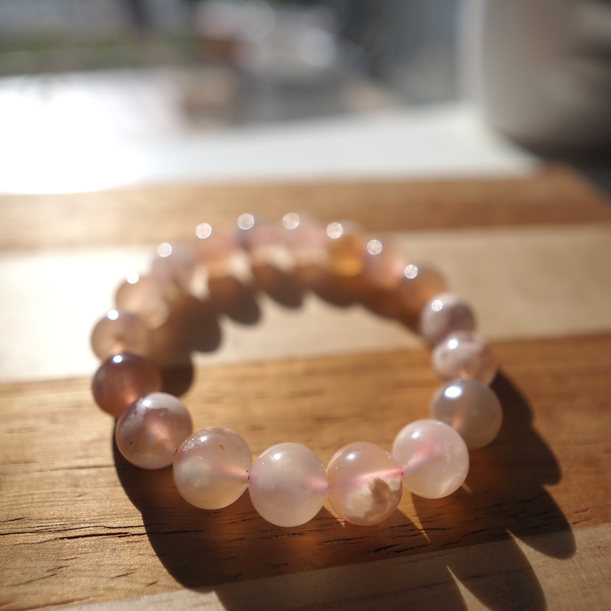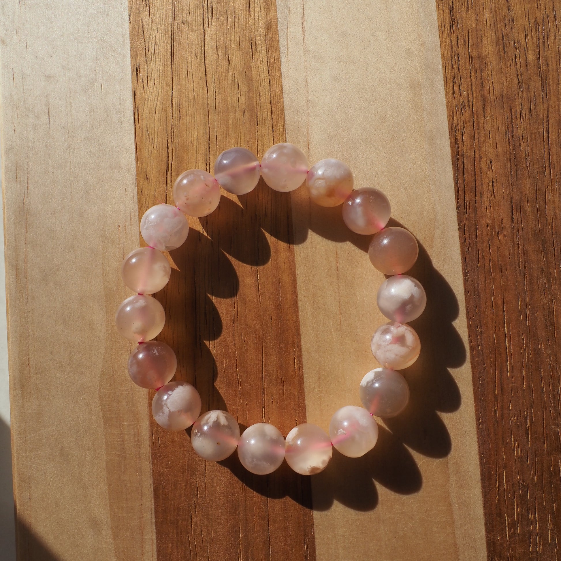 Elevate your style with our Natural Cherry Flower Agate Beads Bracelet featuring 11mm Sakura Agate beads. Experience the unique beauty of natural stones with this stunning accessory. Let the calming energy of Sakura Agate bring balance and harmony to your life. Perfect for any occasion.