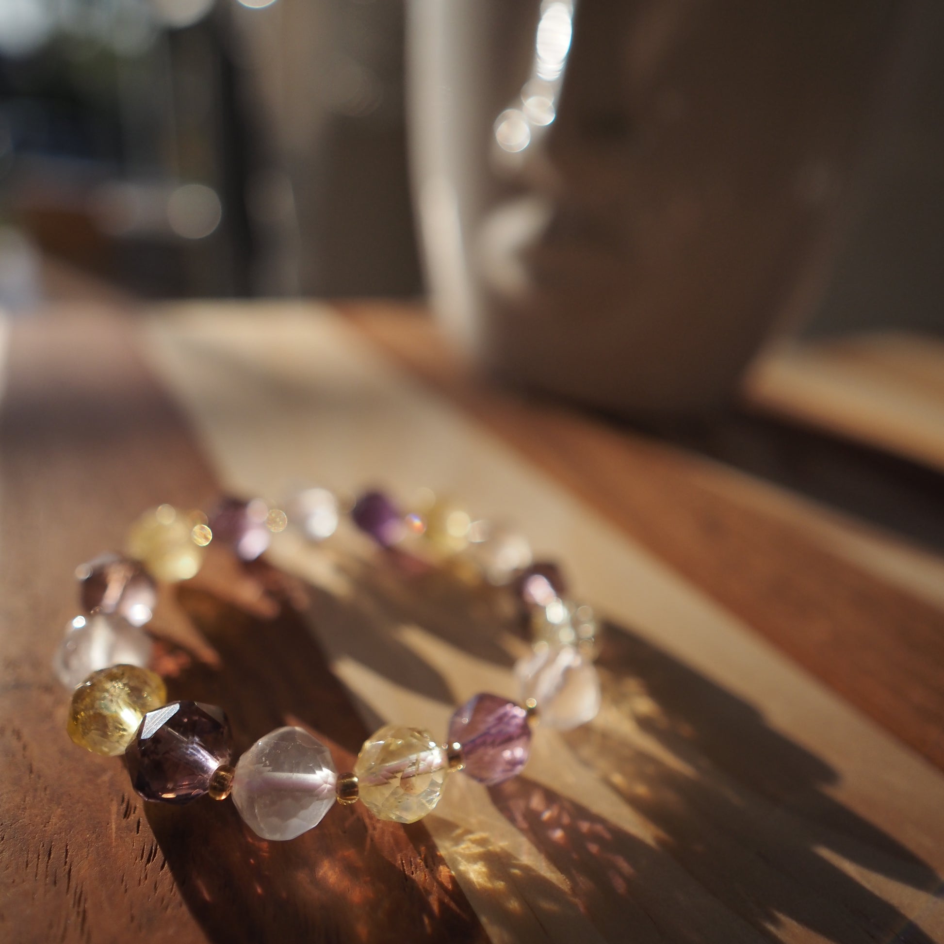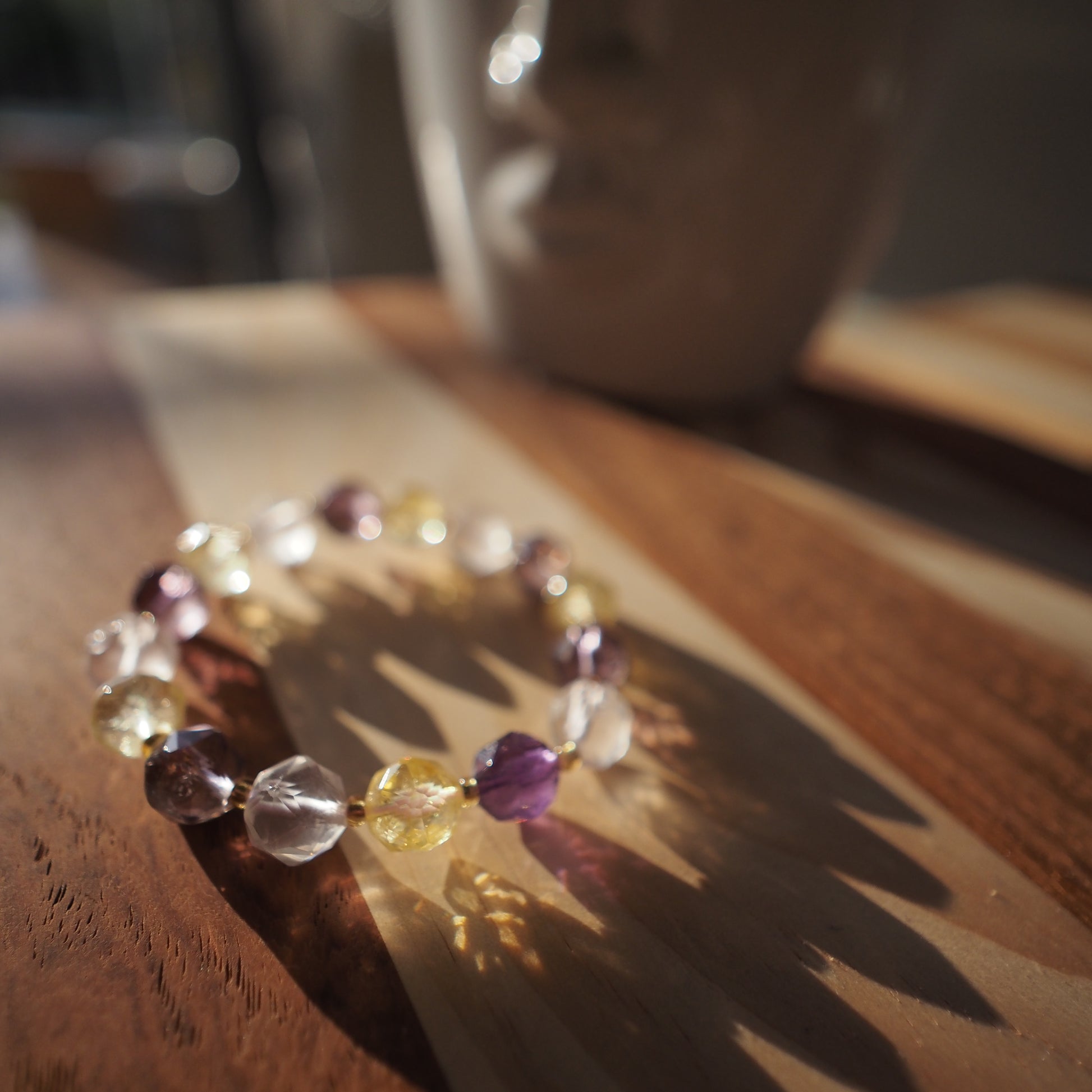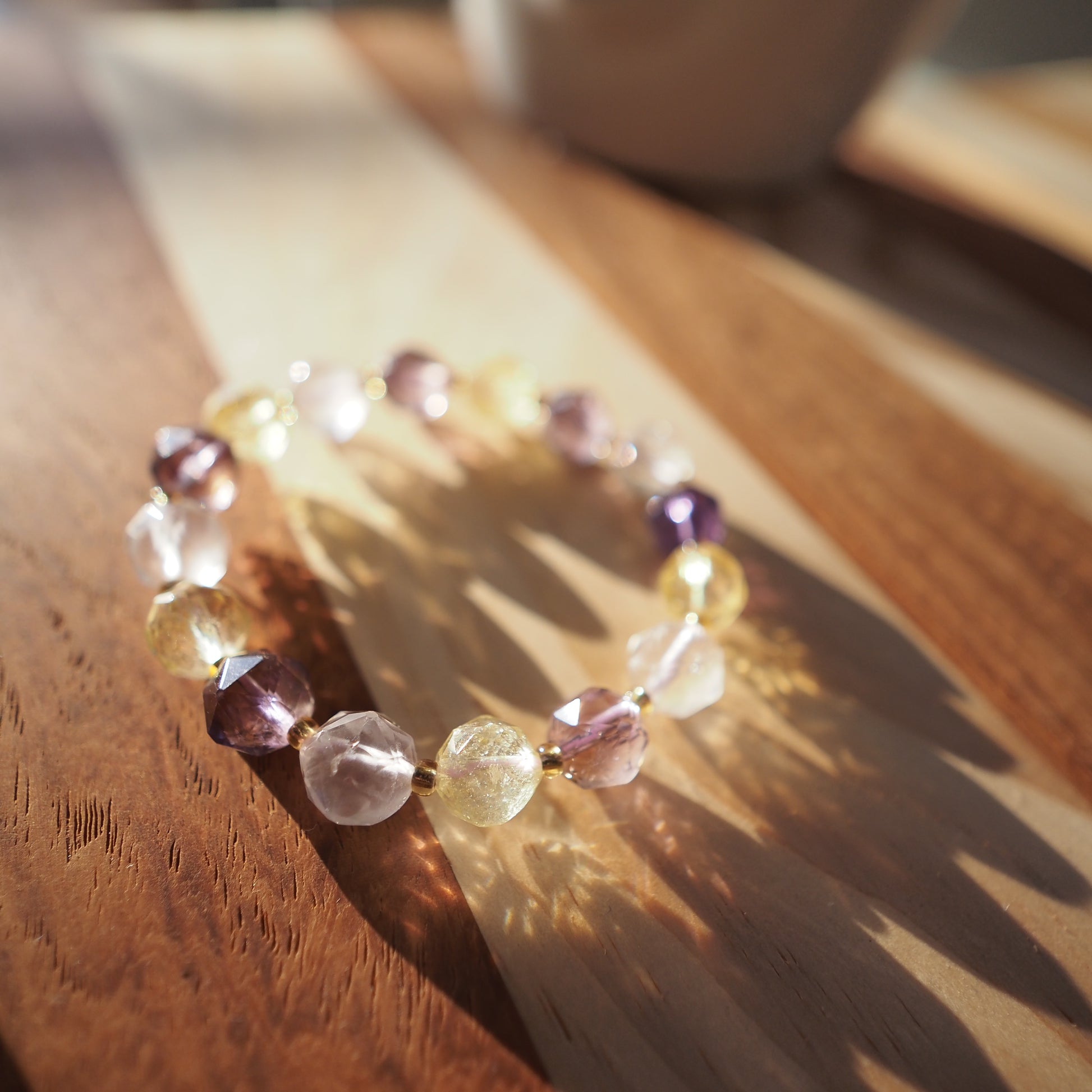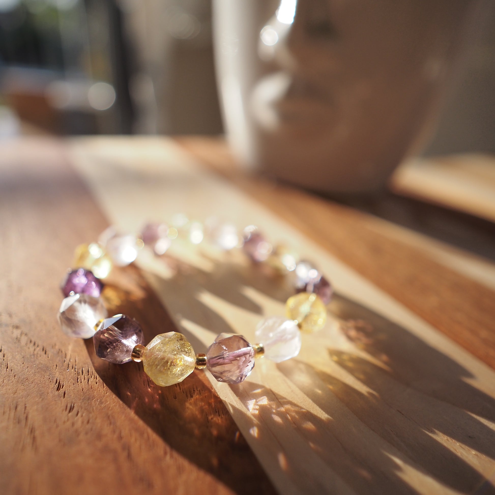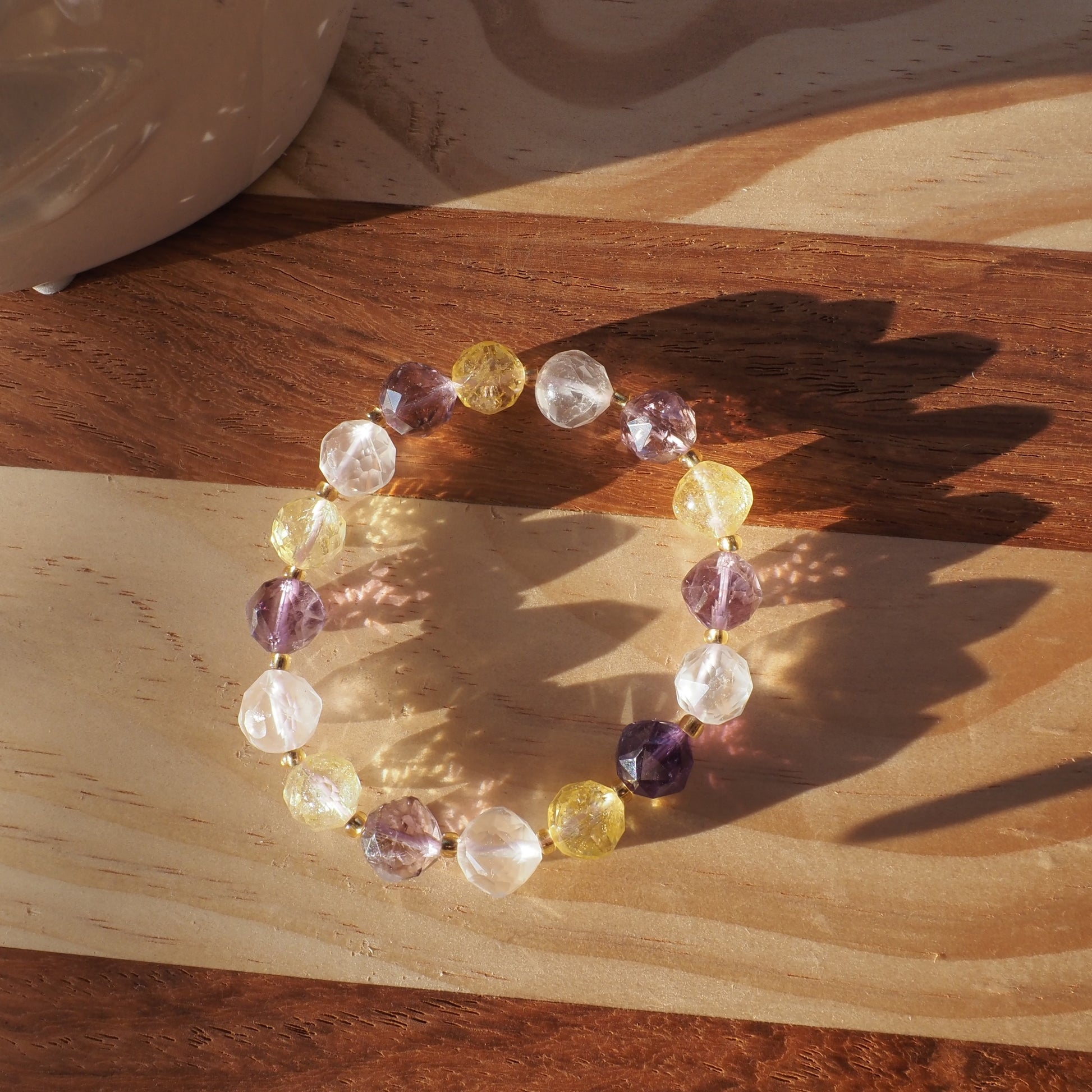 Natural Diamond Cut Amethyst and Citrine and Clear Quartz Bracelet