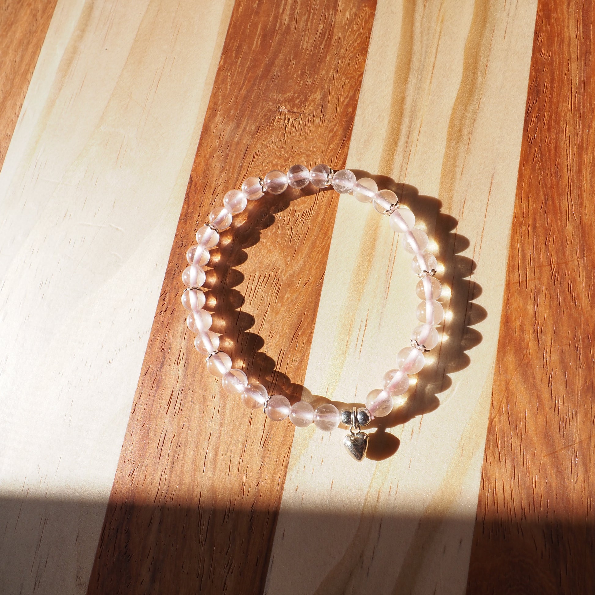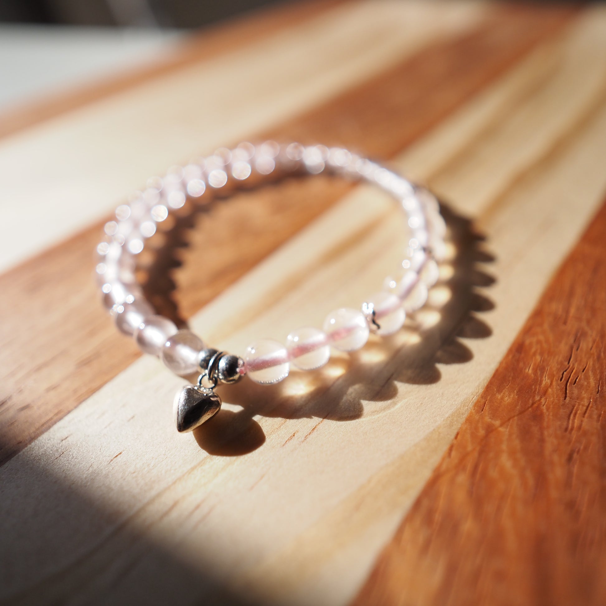 Experience the positive energy of this beautiful Natural Mozambique Star Rose Quartz bracelet. The 5.5mm beads have been carefully selected for their stunning color and quality, while the S925 Silver Heart Charm adds a touch of elegance. Perfect for those seeking balance and love in their life.